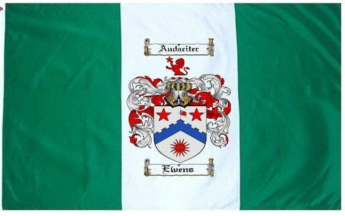 Ewens Family Crest Flag / Coat of Arms Flag. You will receive a high quality 3' x 5' Polyester flag with two brass grommets. Proudly display your family heritage with this flag, or hang as a banner on a wall. Our flags make great gifts for birthdays, weddings, anniversaries, fathers day, mothers day, groomsmen gifts, and any other occasion