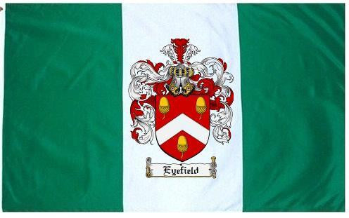 Eyefield Family Crest Flag / Coat of Arms Flag. You will receive a high quality 3' x 5' Polyester flag with two brass grommets. Proudly display your family heritage with this flag, or hang as a banner on a wall. Our flags make great gifts for birthdays, weddings, anniversaries, fathers day, mothers day, groomsmen gifts, and any other occasion