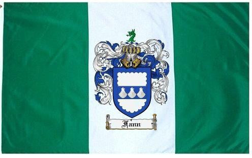 Fann Family Crest Flag / Coat of Arms Flag. You will receive a high quality 3' x 5' Polyester flag with two brass grommets. Proudly display your family heritage with this flag, or hang as a banner on a wall. Our flags make great gifts for birthdays, weddings, anniversaries, fathers day, mothers day, groomsmen gifts, and any other occasion