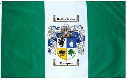 Farquar Family Crest Flag / Coat of Arms Flag. You will receive a high quality 3' x 5' Polyester flag with two brass grommets. Proudly display your family heritage with this flag, or hang as a banner on a wall. Our flags make great gifts for birthdays, weddings, anniversaries, fathers day, mothers day, groomsmen gifts, and any other occasion