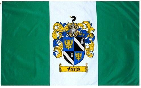 Feerick Family Crest Flag / Coat of Arms Flag. You will receive a high quality 3' x 5' Polyester flag with two brass grommets. Proudly display your family heritage with this flag, or hang as a banner on a wall. Our flags make great gifts for birthdays, weddings, anniversaries, fathers day, mothers day, groomsmen gifts, and any other occasion