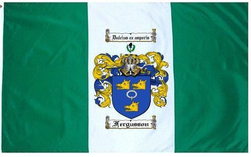 Fergusson Family Crest Flag / Coat of Arms Flag. You will receive a high quality 3' x 5' Polyester flag with two brass grommets. Proudly display your family heritage with this flag, or hang as a banner on a wall. Our flags make great gifts for birthdays, weddings, anniversaries, fathers day, mothers day, groomsmen gifts, and any other occasion