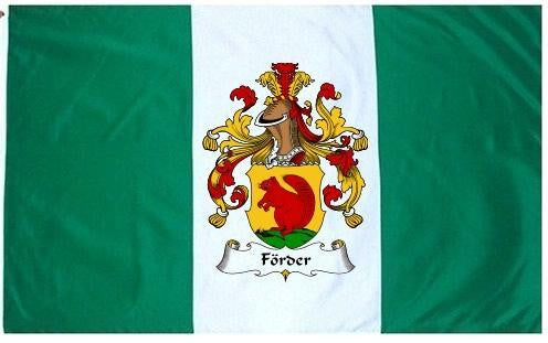 Forder Family Crest Flag / Coat of Arms Flag. You will receive a high quality 3' x 5' Polyester flag with two brass grommets. Proudly display your family heritage with this flag, or hang as a banner on a wall. Our flags make great gifts for birthdays, weddings, anniversaries, fathers day, mothers day, groomsmen gifts, and any other occasion
