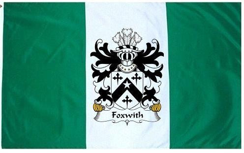 Foxwith Family Crest Flag / Coat of Arms Flag. You will receive a high quality 3' x 5' Polyester flag with two brass grommets. Proudly display your family heritage with this flag, or hang as a banner on a wall. Our flags make great gifts for birthdays, weddings, anniversaries, fathers day, mothers day, groomsmen gifts, and any other occasion