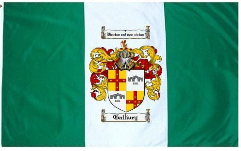 Gallwey Family Crest Flag / Coat of Arms Flag. You will receive a high quality 3' x 5' Polyester flag with two brass grommets. Proudly display your family heritage with this flag, or hang as a banner on a wall. Our flags make great gifts for birthdays, weddings, anniversaries, fathers day, mothers day, groomsmen gifts, and any other occasion