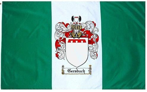 Gersbach Family Crest Flag / Coat of Arms Flag. You will receive a high quality 3' x 5' Polyester flag with two brass grommets. Proudly display your family heritage with this flag, or hang as a banner on a wall. Our flags make great gifts for birthdays, weddings, anniversaries, fathers day, mothers day, groomsmen gifts, and any other occasion