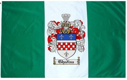 Ghedina Family Crest Flag / Coat of Arms Flag. You will receive a high quality 3' x 5' Polyester flag with two brass grommets. Proudly display your family heritage with this flag, or hang as a banner on a wall. Our flags make great gifts for birthdays, weddings, anniversaries, fathers day, mothers day, groomsmen gifts, and any other occasion