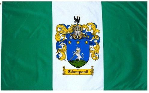 Giampaoli Family Crest Flag / Coat of Arms Flag. You will receive a high quality 3' x 5' Polyester flag with two brass grommets. Proudly display your family heritage with this flag, or hang as a banner on a wall. Our flags make great gifts for birthdays, weddings, anniversaries, fathers day, mothers day, groomsmen gifts, and any other occasion