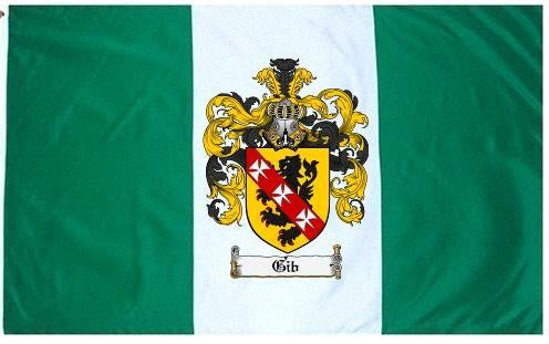 Gib Family Crest Flag / Coat of Arms Flag. You will receive a high quality 3' x 5' Polyester flag with two brass grommets. Proudly display your family heritage with this flag, or hang as a banner on a wall. Our flags make great gifts for birthdays, weddings, anniversaries, fathers day, mothers day, groomsmen gifts, and any other occasion