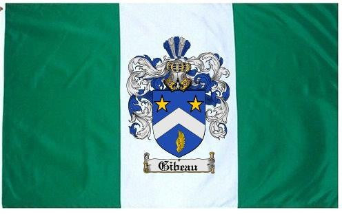 Gibeau Family Crest Flag / Coat of Arms Flag. You will receive a high quality 3' x 5' Polyester flag with two brass grommets. Proudly display your family heritage with this flag, or hang as a banner on a wall. Our flags make great gifts for birthdays, weddings, anniversaries, fathers day, mothers day, groomsmen gifts, and any other occasion