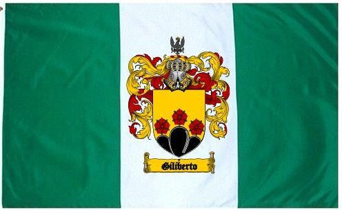 Giliberto Family Crest Flag / Coat of Arms Flag. You will receive a high quality 3' x 5' Polyester flag with two brass grommets. Proudly display your family heritage with this flag, or hang as a banner on a wall. Our flags make great gifts for birthdays, weddings, anniversaries, fathers day, mothers day, groomsmen gifts, and any other occasion