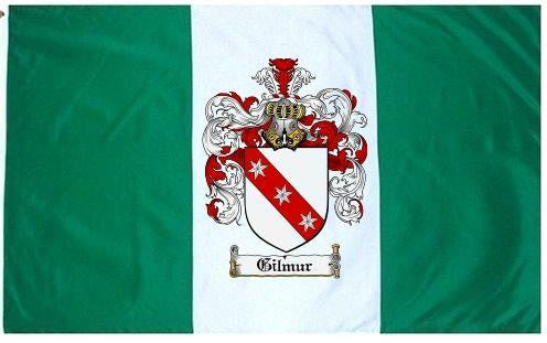 Gilmur Family Crest Flag / Coat of Arms Flag. You will receive a high quality 3' x 5' Polyester flag with two brass grommets. Proudly display your family heritage with this flag, or hang as a banner on a wall. Our flags make great gifts for birthdays, weddings, anniversaries, fathers day, mothers day, groomsmen gifts, and any other occasion