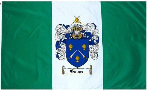 Ginner Family Crest Flag / Coat of Arms Flag. You will receive a high quality 3' x 5' Polyester flag with two brass grommets. Proudly display your family heritage with this flag, or hang as a banner on a wall. Our flags make great gifts for birthdays, weddings, anniversaries, fathers day, mothers day, groomsmen gifts, and any other occasion