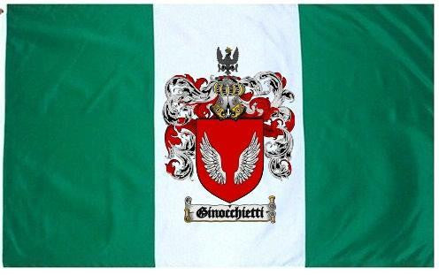 Ginocchietti Family Crest Flag / Coat of Arms Flag. You will receive a high quality 3' x 5' Polyester flag with two brass grommets. Proudly display your family heritage with this flag, or hang as a banner on a wall. Our flags make great gifts for birthdays, weddings, anniversaries, fathers day, mothers day, groomsmen gifts, and any other occasion