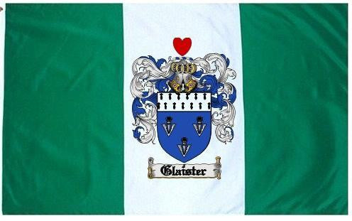 Glaister Family Crest Flag / Coat of Arms Flag. You will receive a high quality 3' x 5' Polyester flag with two brass grommets. Proudly display your family heritage with this flag, or hang as a banner on a wall. Our flags make great gifts for birthdays, weddings, anniversaries, fathers day, mothers day, groomsmen gifts, and any other occasion