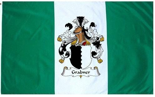 Grabner Family Crest Flag / Coat of Arms Flag. You will receive a high quality 3' x 5' Polyester flag with two brass grommets. Proudly display your family heritage with this flag, or hang as a banner on a wall. Our flags make great gifts for birthdays, weddings, anniversaries, fathers day, mothers day, groomsmen gifts, and any other occasion
