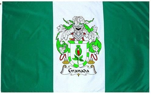 Granada Family Crest Flag / Coat of Arms Flag. You will receive a high quality 3' x 5' Polyester flag with two brass grommets. Proudly display your family heritage with this flag, or hang as a banner on a wall. Our flags make great gifts for birthdays, weddings, anniversaries, fathers day, mothers day, groomsmen gifts, and any other occasion