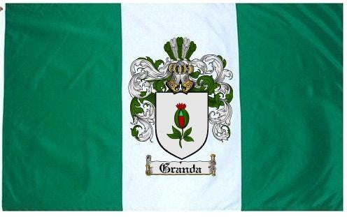 Granda Family Crest Flag / Coat of Arms Flag. You will receive a high quality 3' x 5' Polyester flag with two brass grommets. Proudly display your family heritage with this flag, or hang as a banner on a wall. Our flags make great gifts for birthdays, weddings, anniversaries, fathers day, mothers day, groomsmen gifts, and any other occasion