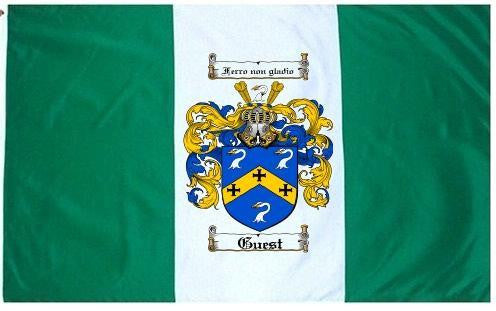 Guest Family Crest Flag / Coat of Arms Flag. You will receive a high quality 3' x 5' Polyester flag with two brass grommets. Proudly display your family heritage with this flag, or hang as a banner on a wall. Our flags make great gifts for birthdays, weddings, anniversaries, fathers day, mothers day, groomsmen gifts, and any other occasion