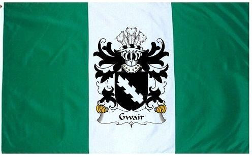 Gwair Family Crest Flag / Coat of Arms Flag. You will receive a high quality 3' x 5' Polyester flag with two brass grommets. Proudly display your family heritage with this flag, or hang as a banner on a wall. Our flags make great gifts for birthdays, weddings, anniversaries, fathers day, mothers day, groomsmen gifts, and any other occasion