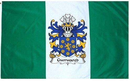 Gwrwared Family Crest Flag / Coat of Arms Flag. You will receive a high quality 3' x 5' Polyester flag with two brass grommets. Proudly display your family heritage with this flag, or hang as a banner on a wall. Our flags make great gifts for birthdays, weddings, anniversaries, fathers day, mothers day, groomsmen gifts, and any other occasion