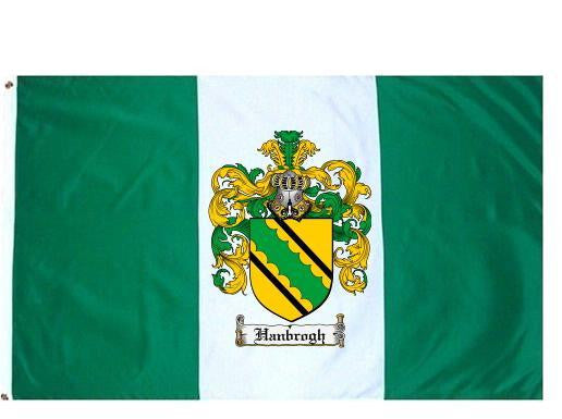 Hanbrogh Family Crest Flag / Coat of Arms Flag. You will receive a high quality 3' x 5' Polyester flag with two brass grommets. Proudly display your family heritage with this flag, or hang as a banner on a wall. Our flags make great gifts for birthdays, weddings, anniversaries, fathers day, mothers day, groomsmen gifts, and any other occasion
