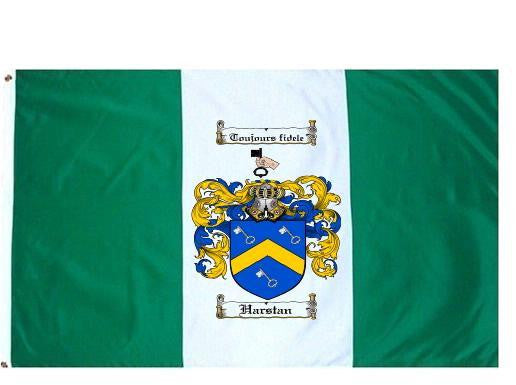 Harstan Family Crest Flag / Coat of Arms Flag. You will receive a high quality 3' x 5' Polyester flag with two brass grommets. Proudly display your family heritage with this flag, or hang as a banner on a wall. Our flags make great gifts for birthdays, weddings, anniversaries, fathers day, mothers day, groomsmen gifts, and any other occasion