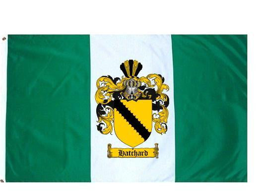 Hatchard Family Crest Flag / Coat of Arms Flag. You will receive a high quality 3' x 5' Polyester flag with two brass grommets. Proudly display your family heritage with this flag, or hang as a banner on a wall. Our flags make great gifts for birthdays, weddings, anniversaries, fathers day, mothers day, groomsmen gifts, and any other occasion