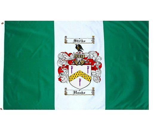 Hauke Family Crest Flag / Coat of Arms Flag. You will receive a high quality 3' x 5' Polyester flag with two brass grommets. Proudly display your family heritage with this flag, or hang as a banner on a wall. Our flags make great gifts for birthdays, weddings, anniversaries, fathers day, mothers day, groomsmen gifts, and any other occasion