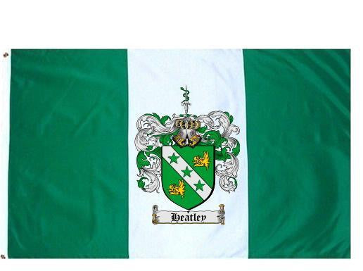Heatley Family Crest Flag / Coat of Arms Flag. You will receive a high quality 3' x 5' Polyester flag with two brass grommets. Proudly display your family heritage with this flag, or hang as a banner on a wall. Our flags make great gifts for birthdays, weddings, anniversaries, fathers day, mothers day, groomsmen gifts, and any other occasion