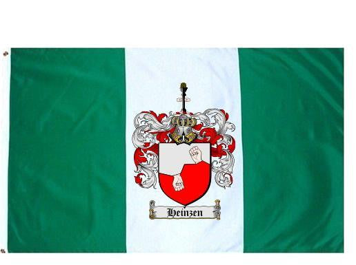 Heinzen Family Crest Flag / Coat of Arms Flag. You will receive a high quality 3' x 5' Polyester flag with two brass grommets. Proudly display your family heritage with this flag, or hang as a banner on a wall. Our flags make great gifts for birthdays, weddings, anniversaries, fathers day, mothers day, groomsmen gifts, and any other occasion