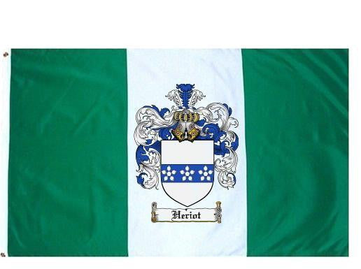 Heriot Family Crest Flag / Coat of Arms Flag. You will receive a high quality 3' x 5' Polyester flag with two brass grommets. Proudly display your family heritage with this flag, or hang as a banner on a wall. Our flags make great gifts for birthdays, weddings, anniversaries, fathers day, mothers day, groomsmen gifts, and any other occasion