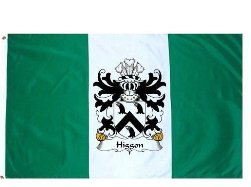 Higgon Family Crest Flag / Coat of Arms Flag. You will receive a high quality 3' x 5' Polyester flag with two brass grommets. Proudly display your family heritage with this flag, or hang as a banner on a wall. Our flags make great gifts for birthdays, weddings, anniversaries, fathers day, mothers day, groomsmen gifts, and any other occasion