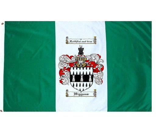 Higgons Family Crest Flag / Coat of Arms Flag. You will receive a high quality 3' x 5' Polyester flag with two brass grommets. Proudly display your family heritage with this flag, or hang as a banner on a wall. Our flags make great gifts for birthdays, weddings, anniversaries, fathers day, mothers day, groomsmen gifts, and any other occasion