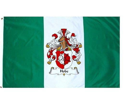 Hobe Family Crest Flag / Coat of Arms Flag. You will receive a high quality 3' x 5' Polyester flag with two brass grommets. Proudly display your family heritage with this flag, or hang as a banner on a wall. Our flags make great gifts for birthdays, weddings, anniversaries, fathers day, mothers day, groomsmen gifts, and any other occasion