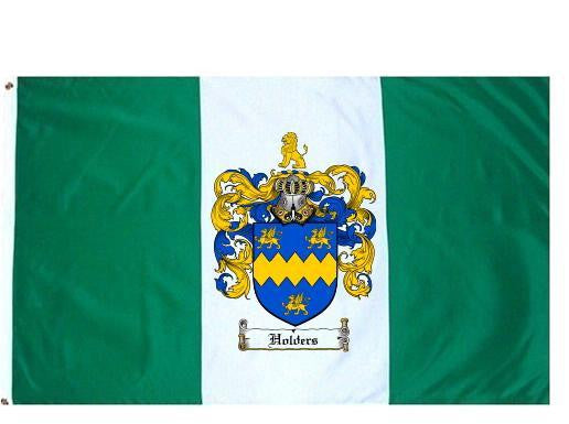 Holders Family Crest Flag / Coat of Arms Flag. You will receive a high quality 3' x 5' Polyester flag with two brass grommets. Proudly display your family heritage with this flag, or hang as a banner on a wall. Our flags make great gifts for birthdays, weddings, anniversaries, fathers day, mothers day, groomsmen gifts, and any other occasion
