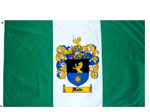 Holle Family Crest Flag / Coat of Arms Flag. You will receive a high quality 3' x 5' Polyester flag with two brass grommets. Proudly display your family heritage with this flag, or hang as a banner on a wall. Our flags make great gifts for birthdays, weddings, anniversaries, fathers day, mothers day, groomsmen gifts, and any other occasion