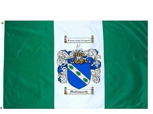 Hollinworth Family Crest Flag / Coat of Arms Flag. You will receive a high quality 3' x 5' Polyester flag with two brass grommets. Proudly display your family heritage with this flag, or hang as a banner on a wall. Our flags make great gifts for birthdays, weddings, anniversaries, fathers day, mothers day, groomsmen gifts, and any other occasion