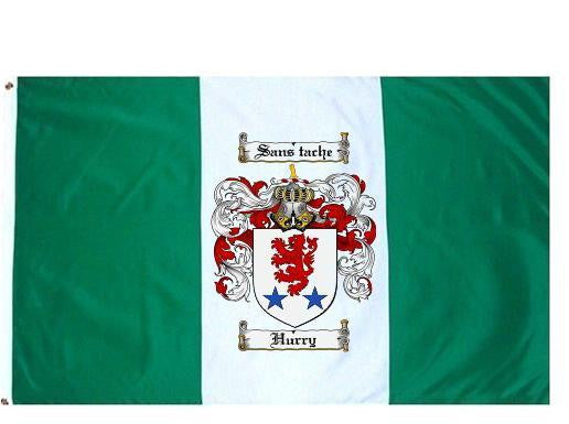 Hurry Family Crest Flag / Coat of Arms Flag. You will receive a high quality 3' x 5' Polyester flag with two brass grommets. Proudly display your family heritage with this flag, or hang as a banner on a wall. Our flags make great gifts for birthdays, weddings, anniversaries, fathers day, mothers day, groomsmen gifts, and any other occasion