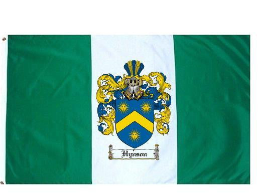 Hynson Family Crest Flag / Coat of Arms Flag. You will receive a high quality 3' x 5' Polyester flag with two brass grommets. Proudly display your family heritage with this flag, or hang as a banner on a wall. Our flags make great gifts for birthdays, weddings, anniversaries, fathers day, mothers day, groomsmen gifts, and any other occasion