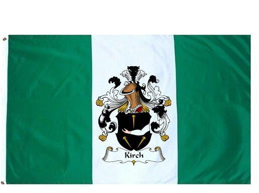Kirch Family Crest Flag / Coat of Arms Flag. You will receive a high quality 3' x 5' Polyester flag with two brass grommets. Proudly display your family heritage with this flag, or hang as a banner on a wall. Our flags make great gifts for birthdays, weddings, anniversaries, fathers day, mothers day, groomsmen gifts, and any other occasion
