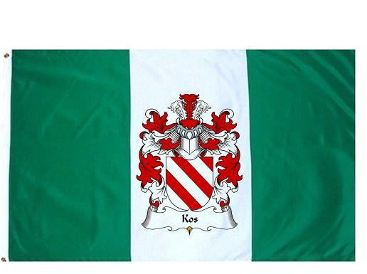 Kos Family Crest Flag / Coat of Arms Flag. You will receive a high quality 3' x 5' Polyester flag with two brass grommets. Proudly display your family heritage with this flag, or hang as a banner on a wall. Our flags make great gifts for birthdays, weddings, anniversaries, fathers day, mothers day, groomsmen gifts, and any other occasion
