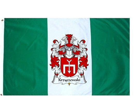 Krzyczewski Family Crest Flag / Coat of Arms Flag. You will receive a high quality 3' x 5' Polyester flag with two brass grommets. Proudly display your family heritage with this flag, or hang as a banner on a wall. Our flags make great gifts for birthdays, weddings, anniversaries, fathers day, mothers day, groomsmen gifts, and any other occasion