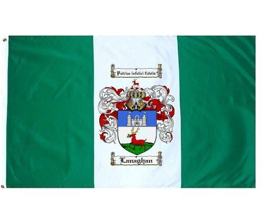 Lanaghan Family Crest Flag / Coat of Arms Flag. You will receive a high quality 3' x 5' Polyester flag with two brass grommets. Proudly display your family heritage with this flag, or hang as a banner on a wall. Our flags make great gifts for birthdays, weddings, anniversaries, fathers day, mothers day, groomsmen gifts, and any other occasion