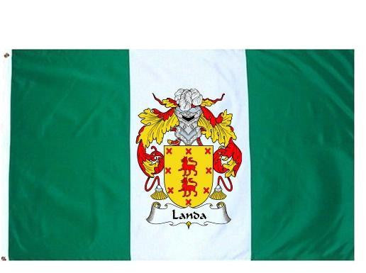 Landa Family Crest Flag / Coat of Arms Flag. You will receive a high quality 3' x 5' Polyester flag with two brass grommets. Proudly display your family heritage with this flag, or hang as a banner on a wall. Our flags make great gifts for birthdays, weddings, anniversaries, fathers day, mothers day, groomsmen gifts, and any other occasion