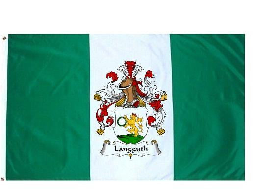 Langguth Family Crest Flag / Coat of Arms Flag. You will receive a high quality 3' x 5' Polyester flag with two brass grommets. Proudly display your family heritage with this flag, or hang as a banner on a wall. Our flags make great gifts for birthdays, weddings, anniversaries, fathers day, mothers day, groomsmen gifts, and any other occasion