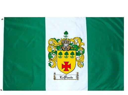 Laplante Family Crest Flag / Coat of Arms Flag. You will receive a high quality 3' x 5' Polyester flag with two brass grommets. Proudly display your family heritage with this flag, or hang as a banner on a wall. Our flags make great gifts for birthdays, weddings, anniversaries, fathers day, mothers day, groomsmen gifts, and any other occasion