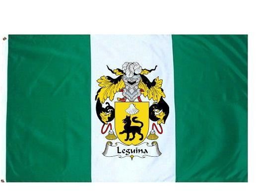 Leguina Family Crest Flag / Coat of Arms Flag. You will receive a high quality 3' x 5' Polyester flag with two brass grommets. Proudly display your family heritage with this flag, or hang as a banner on a wall. Our flags make great gifts for birthdays, weddings, anniversaries, fathers day, mothers day, groomsmen gifts, and any other occasion