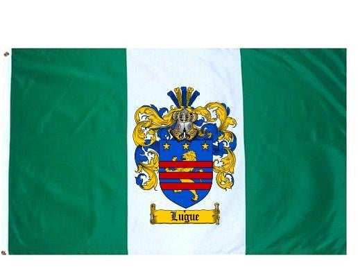 Lugue Family Crest Flag / Coat of Arms Flag. You will receive a high quality 3' x 5' Polyester flag with two brass grommets. Proudly display your family heritage with this flag, or hang as a banner on a wall. Our flags make great gifts for birthdays, weddings, anniversaries, fathers day, mothers day, groomsmen gifts, and any other occasion