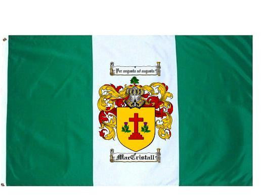 Maccristall Family Crest Flag / Coat of Arms Flag. You will receive a high quality 3' x 5' Polyester flag with two brass grommets. Proudly display your family heritage with this flag, or hang as a banner on a wall. Our flags make great gifts for birthdays, weddings, anniversaries, fathers day, mothers day, groomsmen gifts, and any other occasion
